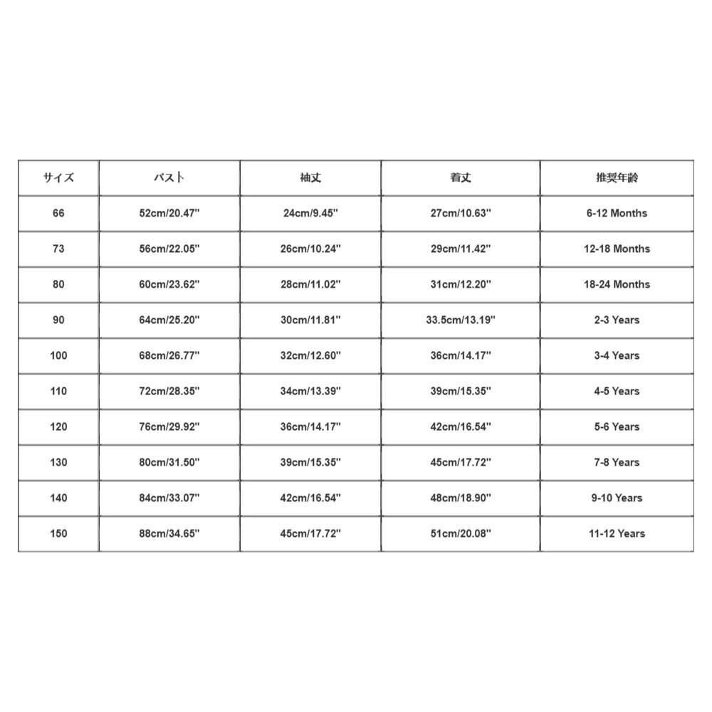| Size:90 | Bust:64cm/25.20'' | Sleeve:30cm/11.81'' | Length:33.5cm/13.19'' | Recommended age:2-3 Years |